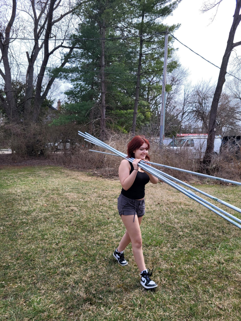 It was a great week in the garden this week! We made good progress on the deer fence, planted the onions and spinach, tended to our sweet potato slips, planted the shrubs and weeded in the labyrinth, and labeled many of the plants there. This week, Monica will not be there, but Fenn will lead the charge to put together the strawberry towers and get the watering system working, as well as weed and mulch the paths inside the food bed.