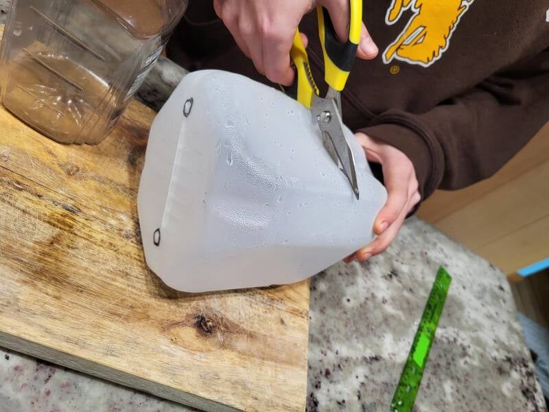 1. Prepare a container that has a clear lid by poking a small hole or two in the bottom. This will drain any excess water. Then, poke a hole in the lid. This will allow excess heat to escape. If your container already has a small opening in it (for example a milk jug or 2 liter bottle that you have cut in 1/2.) simply remove and discard the lid.